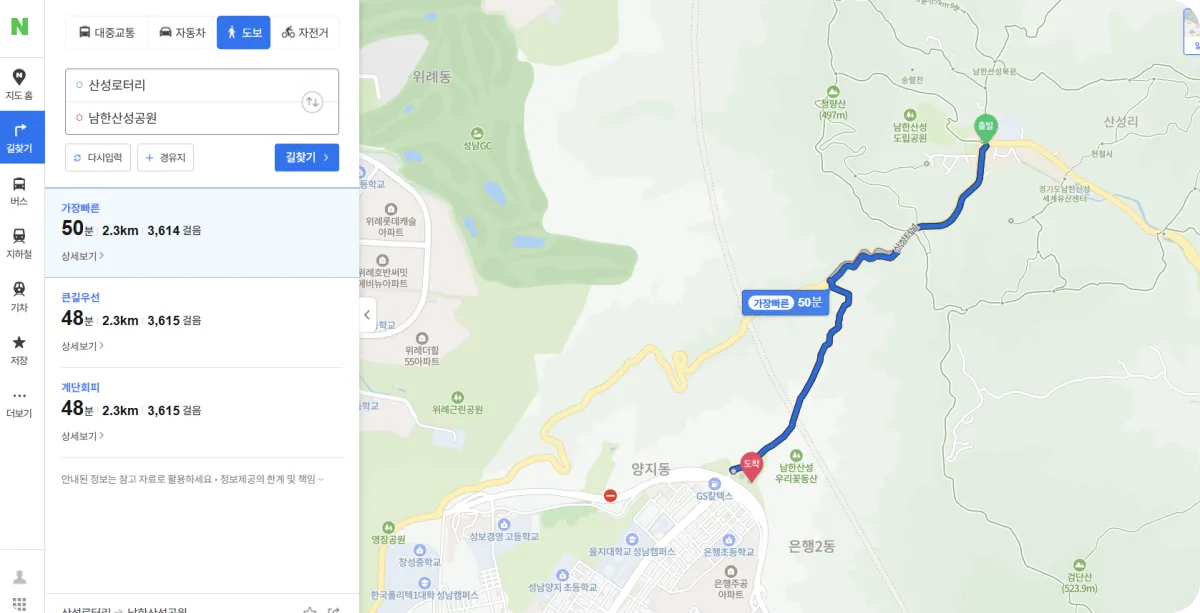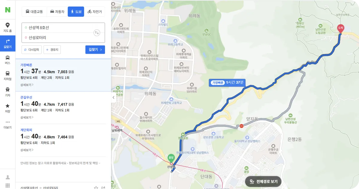 2. 산성역 ➙ 로터리 도보 경로 상세 후기