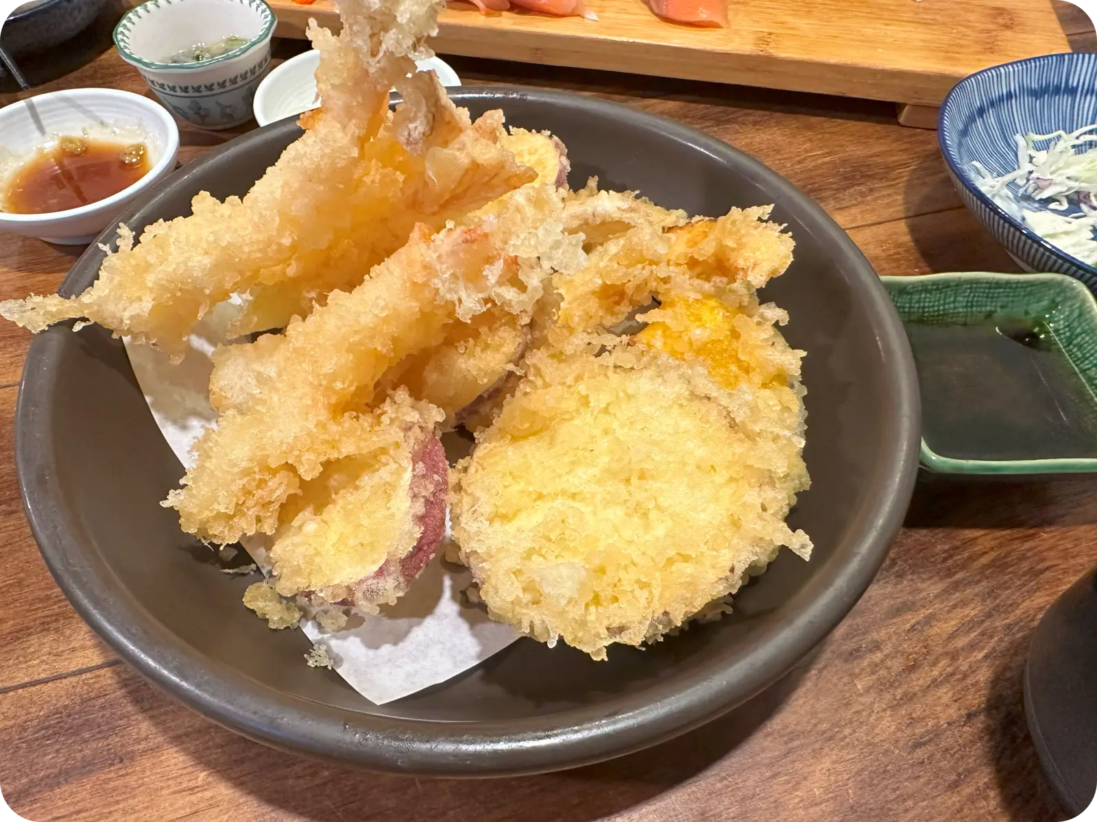 - 돈가스 & 모듬튀김: 회를 아직 잘 못 먹는 둘째를 위해 주문했습니다. 튀김 옷이 하얗고 깨끗해서 좋은 기름을 쓰는 게 느껴졌습니다. 바삭하고 느끼하지 않아 아이들도 잘 먹었습니다.
