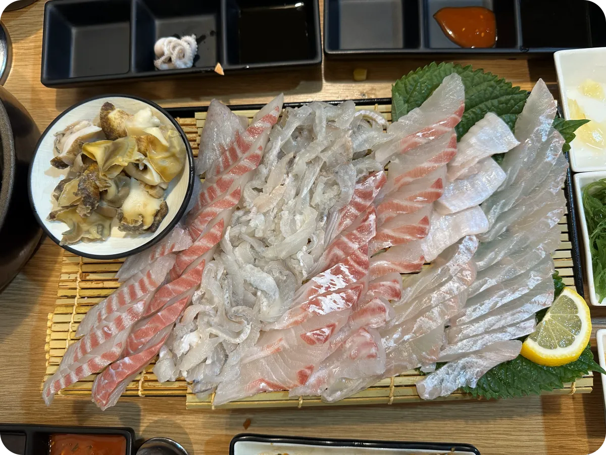 - 감성돔, 참돔, 광어: 큼직하게 썰어져 나와 씹는 맛이 좋고 고소했습니다.