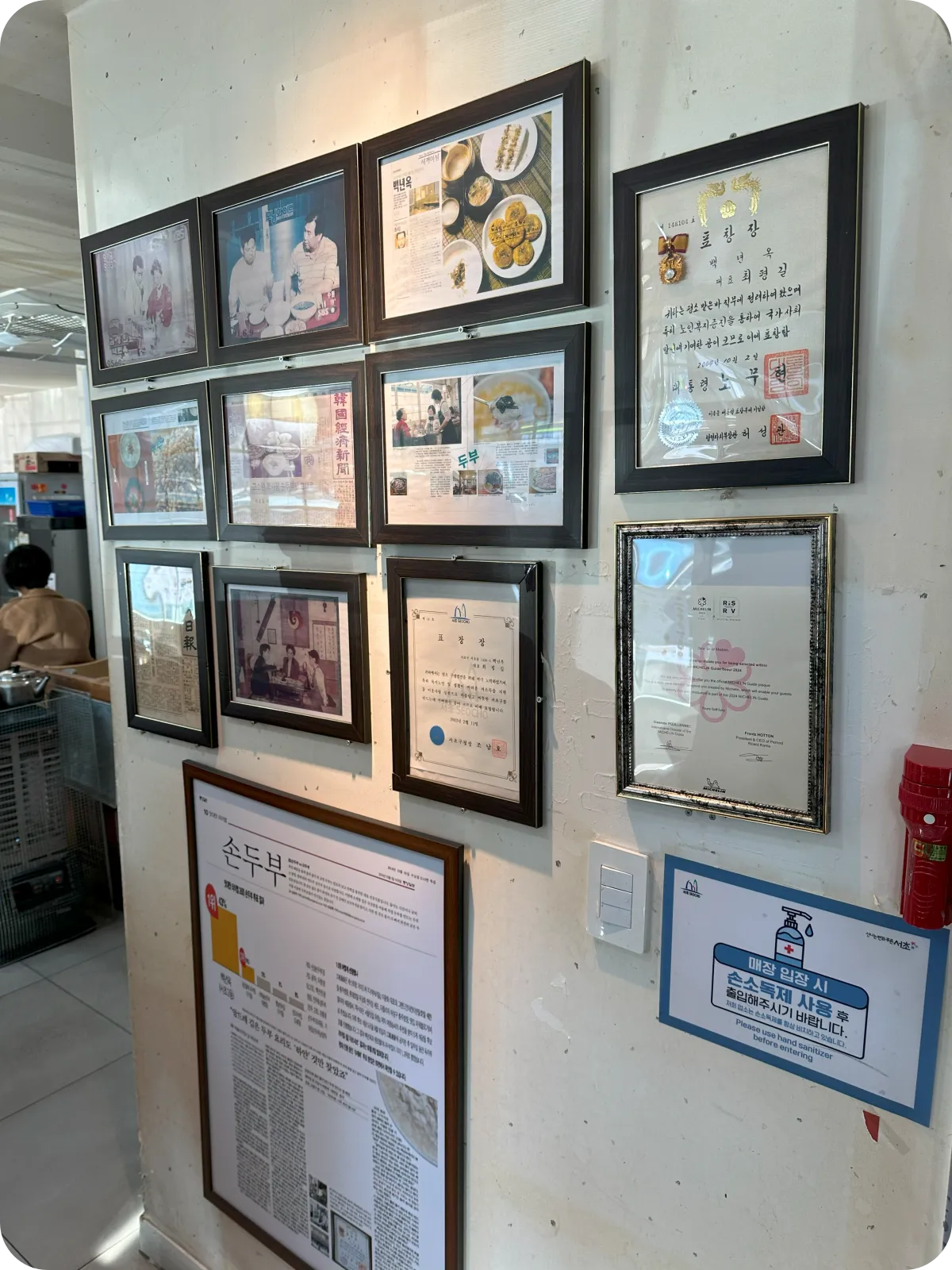 - 대기 시 입구 벽에 걸린 대통령 표창이나 미쉐린 2024 인증서 등을 구경하는 재미도 쏠쏠합니다.