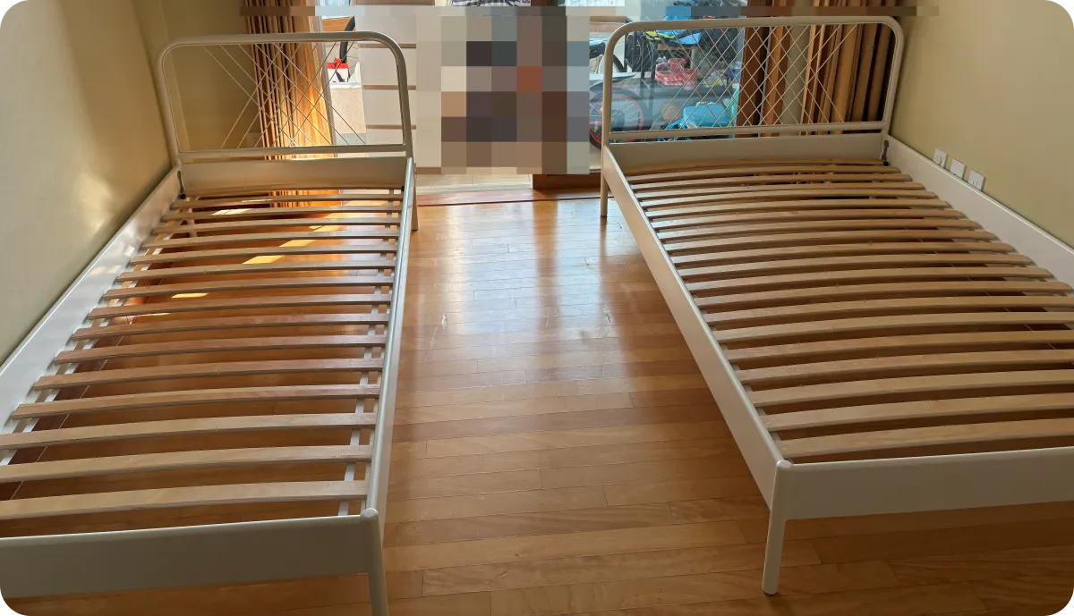 안녕하세요 NiceSunnyDay 입니다.2026년 1월 1일 아침, 우리 아이들에게 아주 특별한 선물이 도착했습니다. 바로 아이들 각자의 아늑한 잠자리를 책임질 이케아 침대인데요. 며칠 전 이케아 기흥점에서 직접 보고 고른 침대들이 드디어 새해 첫날에 배송과 설치를 마쳤습니다. 직접 조립할까 고민하다가 선택한 배송 및 조립 서비스 덕분에 아빠도, 아이들도 행복했던 새해 첫날의 기록을 남깁니다.1. 제품 선택: '네스툰' 프레임과 '오뷔그다' 매트리스아이들 방 분위기를 결정짓는 프레임과 꿀잠을 책임질 매트리스 선택에 고민이 많았습니다. 프레임: 네스툰(NESTTUN)흰색 철제 프레임 특유의 깔끔함과 그물망 같은 헤드 보드 디자인이 세련되어 보였습니다. 무엇보다 튼튼하면서도 방이 넓어 보이는 효과가 있어 ..
