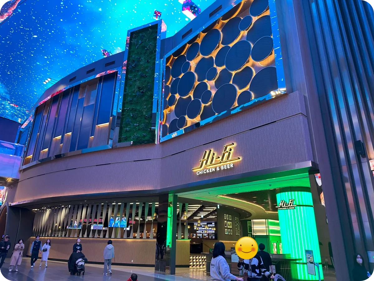 안녕하세요. 인스파이어 리조트 호캉스를 다녀온 Nice Sunny Day입니다.리조트 구경 중 우연히 발견한 강렬한 초록색 외관의 식당, '하이파이 치킨앤비어 (Hi-Fi Chicken & Beer)'에서 저녁 식사를 했습니다. 호프집 분위기지만 "K-street flavors"를 내세우며 분식과 치킨 메뉴를 주력으로 하는 독특한 콘셉트가 흥미로웠습니다. (내돈내산 솔직 리뷰입니다.)오로라 공연 관람 명당 팁과 함께 가족 단위 방문에 적합했던 하이파이 치킨앤비어 후기를 공유합니다.※ 최근에 다시 검색해보니 가게 이름이 "하이파이 코리안 소울 푸드" 인 것 같습니다. (25년11월 확인)1. 레트로 감성 인테리어와 편리한 동선 위치: 메인 통로 주변에 위치하며, 매시 정각/30분에 상영되는 오로라 공연 홀..