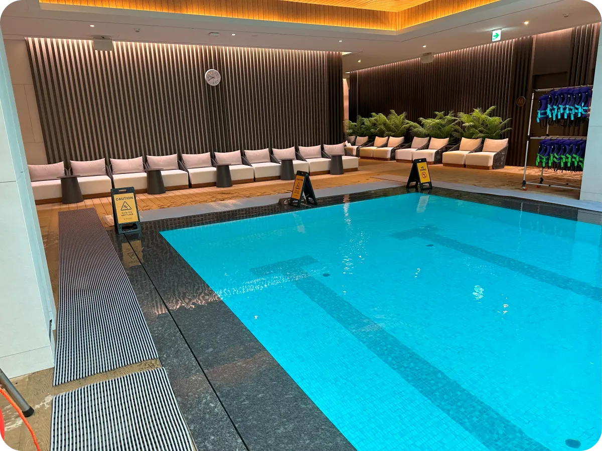 인스파이어 리조트 실내 수영장 솔직 후기: 태블릿 예약 필수! (위치, 운영시간, 샤워실 팁)